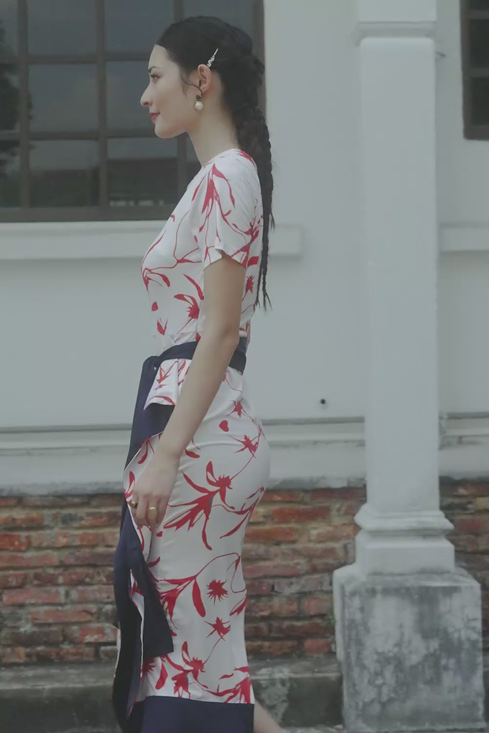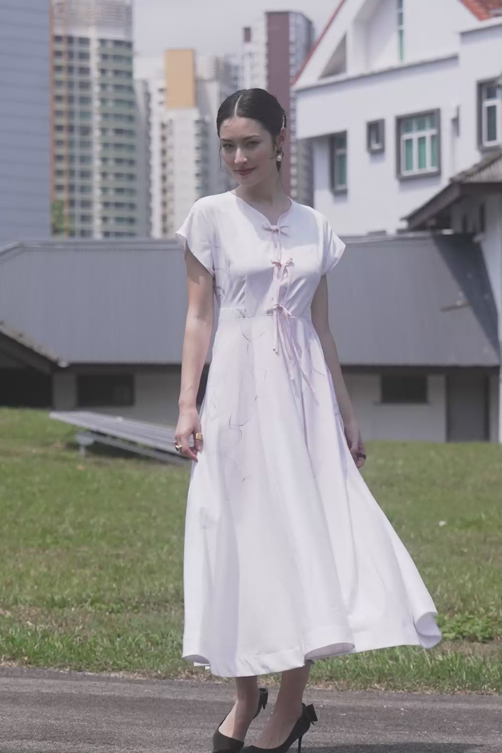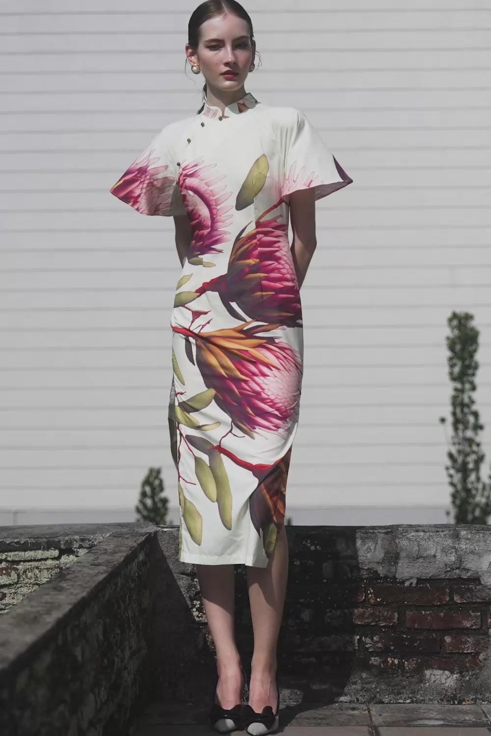 Flutter Sleeves Pencil Qipao (Quietude)Microfiber Polyester (Mimics Rayon)