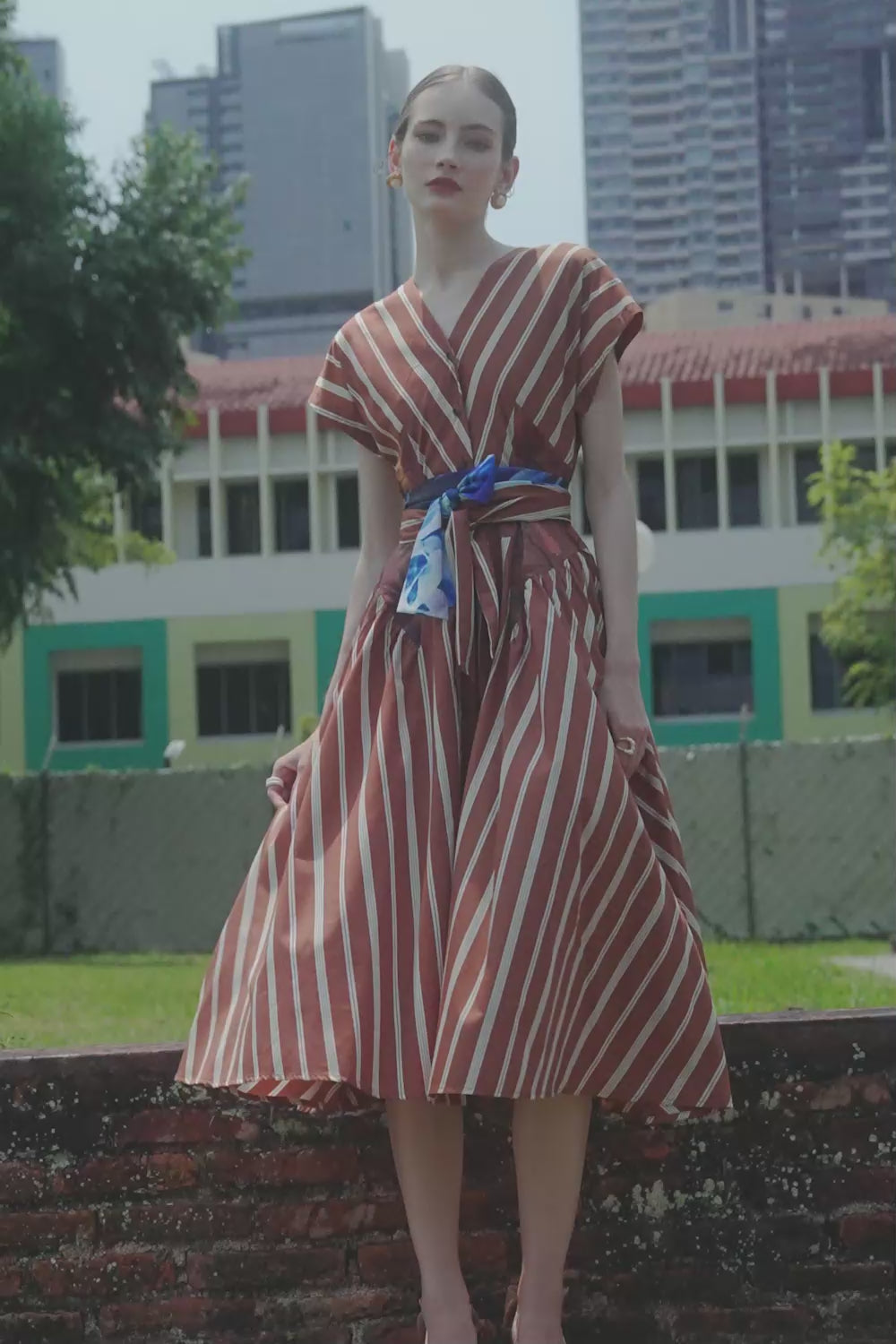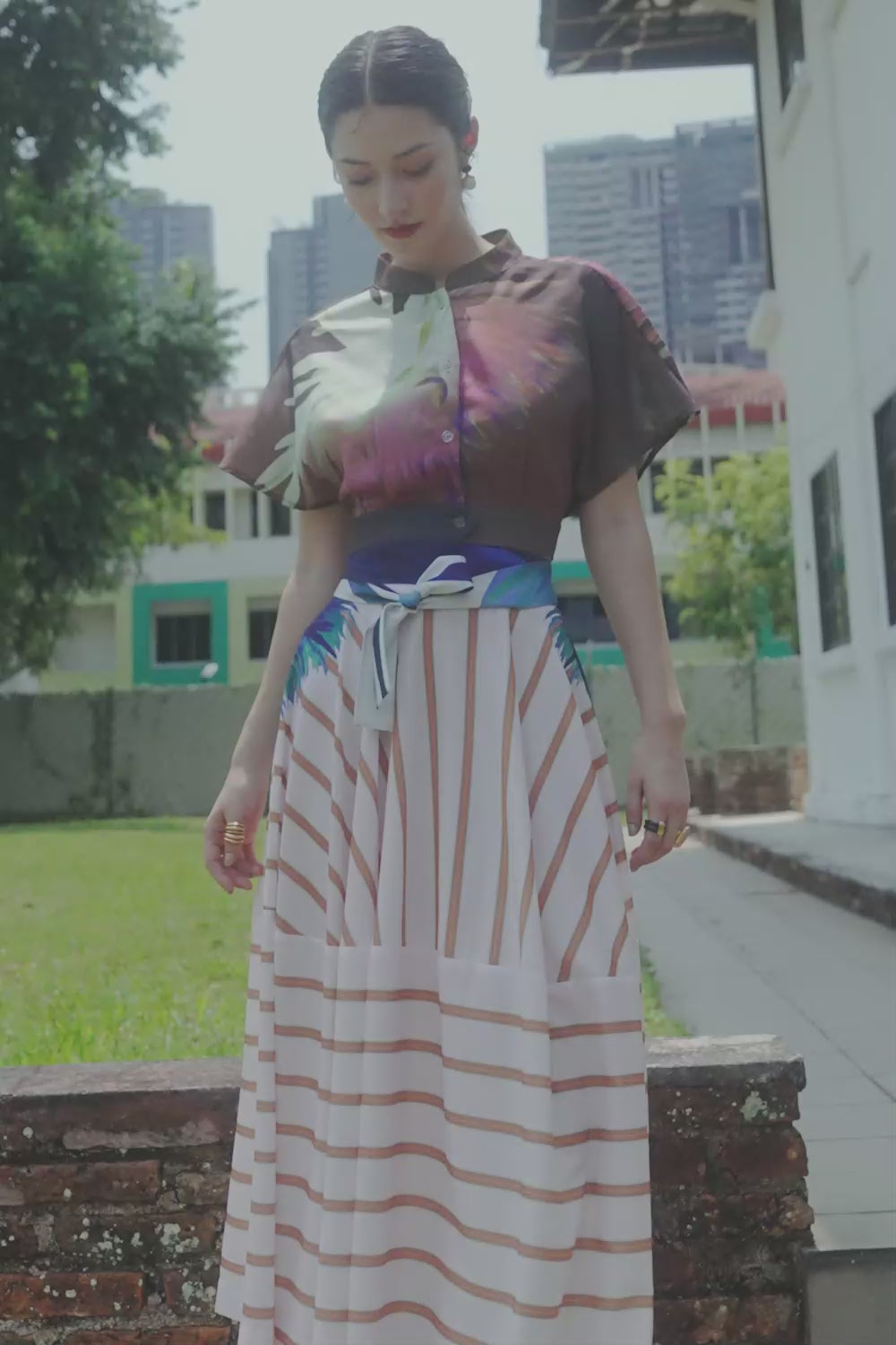 Square Sleeves Fit & Flare Qipao (Echo)Ribbing, Liquid Organza, Rayon