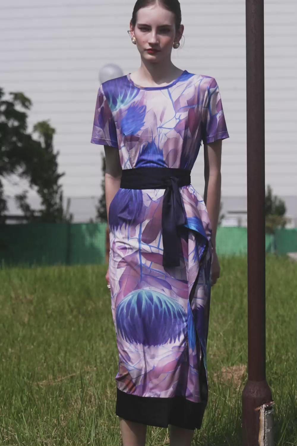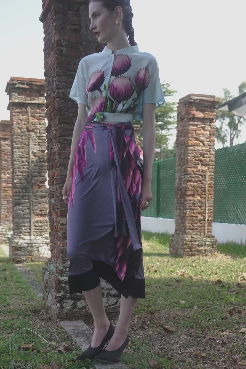 Flutter Sleeves Pencil Qipao (Dusk)Microfiber Polyester (Mimics Rayon)