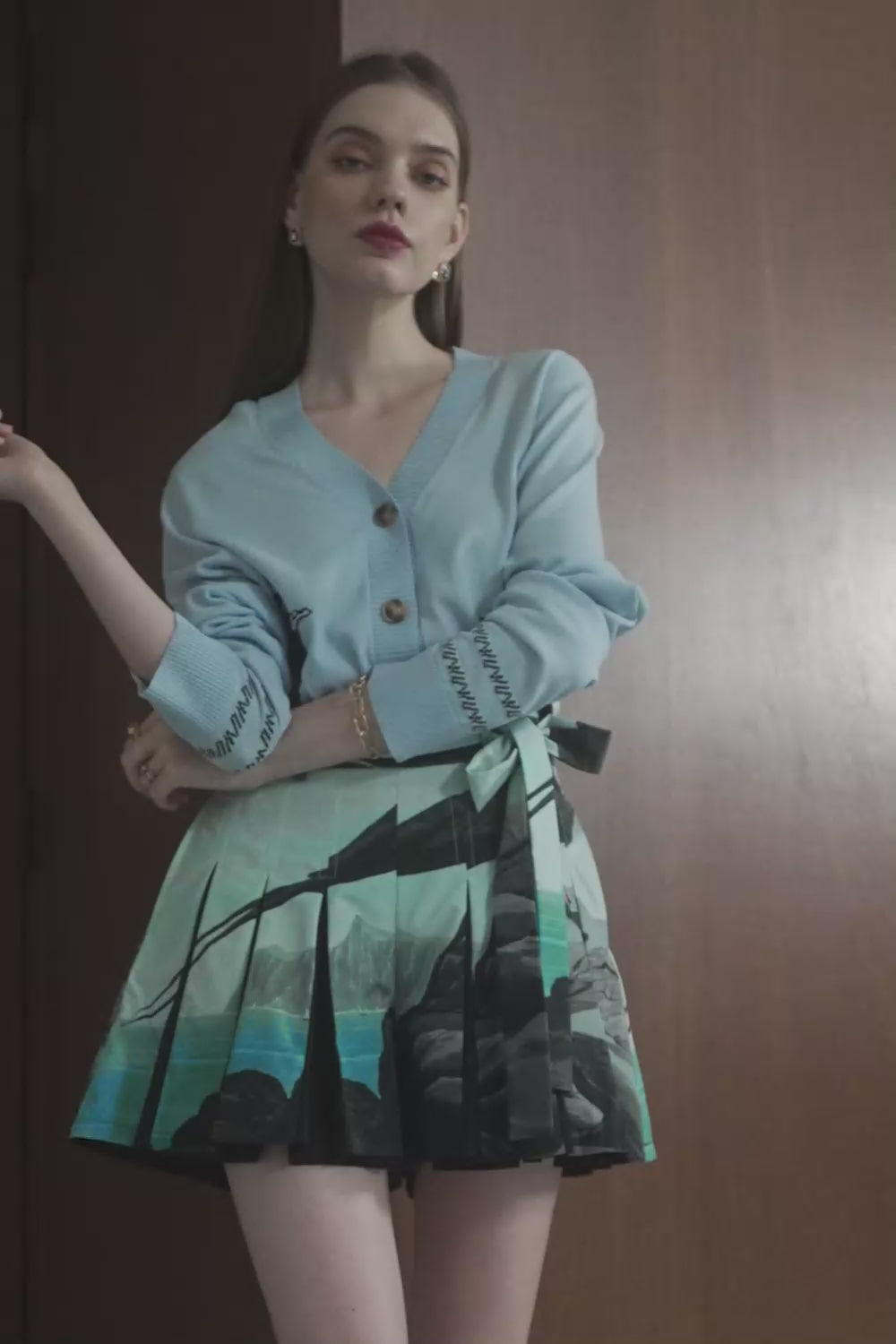The Godet Box Pleat Shorts are a reimagining of summer’s most playful silhouette. Printed with a sweeping seascape, the box pleats hold their architectural stance while opening to reveal glimpses of movement and print like shifting panels. Inspired by the introspection of vintage woodblock prints and the nostalgia of postcards never sent, this piece blends structure with softness.