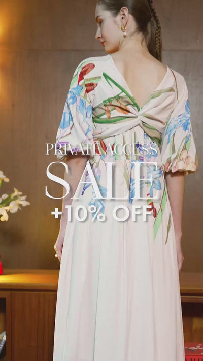 Back-to-Front Parachute Sleeves Midi Dress (Freesia)Organic Cotton-Tencel Blend