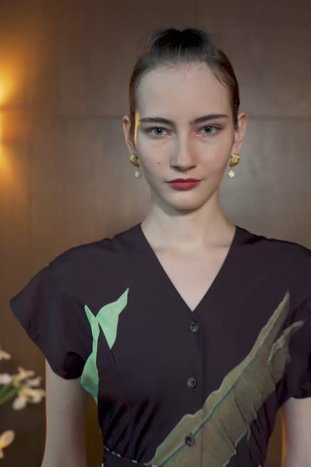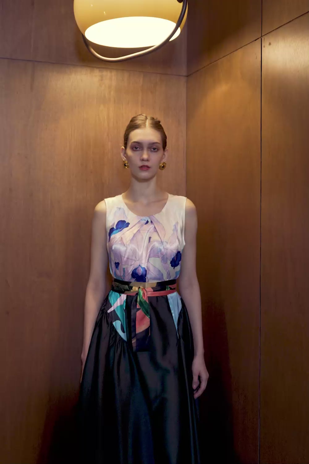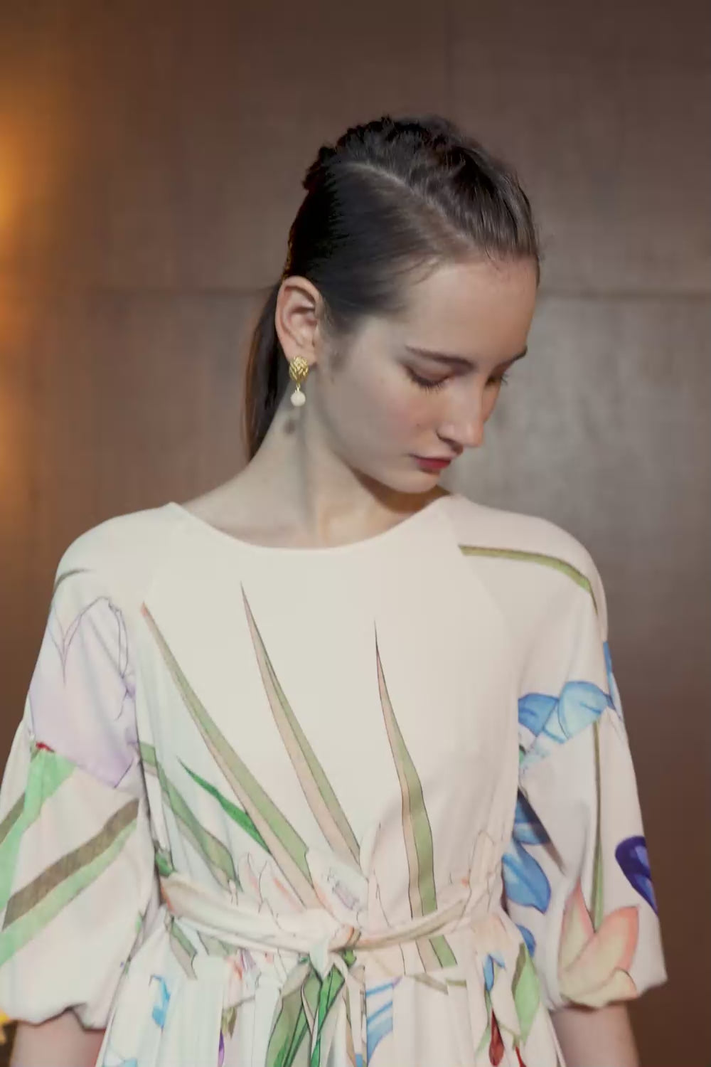 Shawl Collar Panel Dress (Cymbidium Orchid)Microfiber Polyester (Mimics Nylon)
