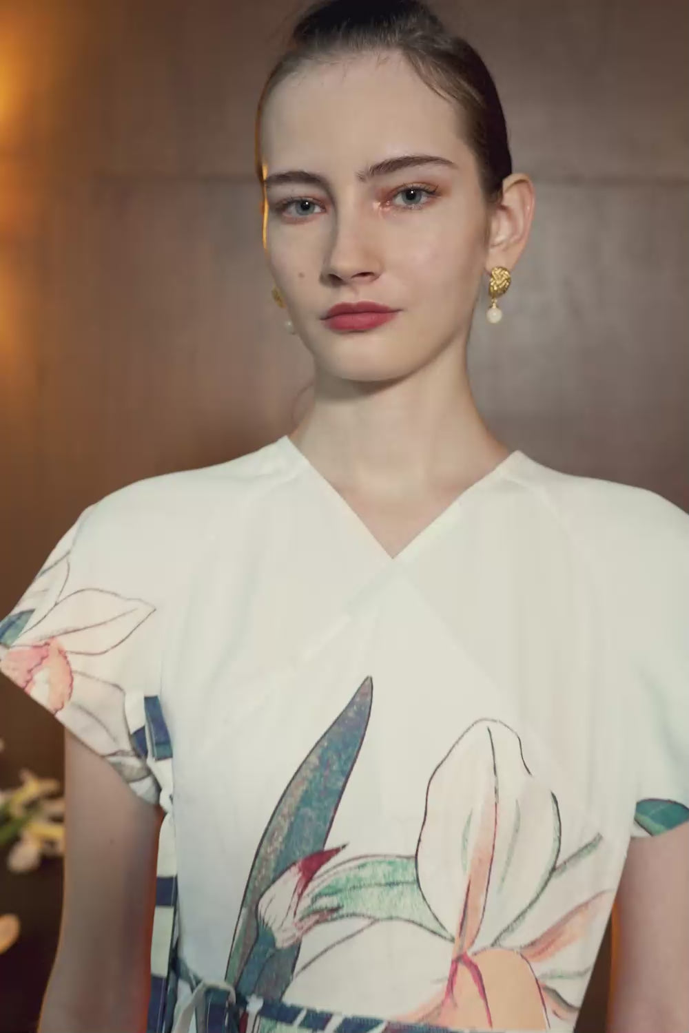 Blended Collar Wrap Dress (Vitis & Stokesia)Microfiber Polyester (Mimics Cotton)