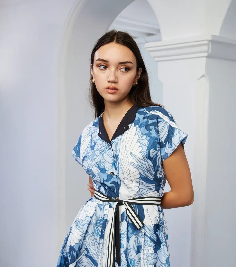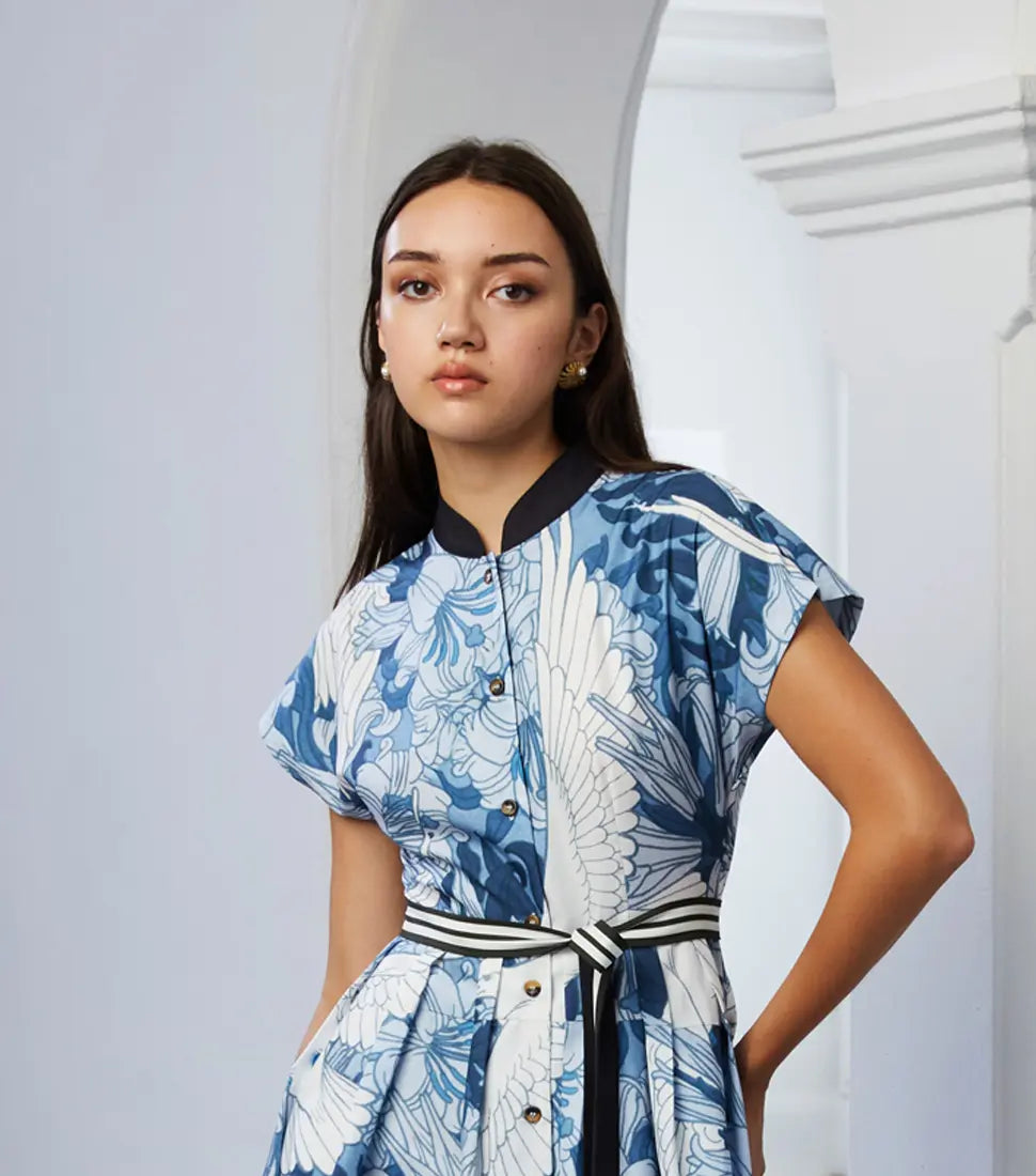 Fitted through the bodice with a micro Chinese collar, flutter sleeves and side slits, the classic Qipao is reinterpreted for movement and comfort. Designed to honour tradition while embracing modern sensibilities, the soft tailoring flatters the form without restricting it.