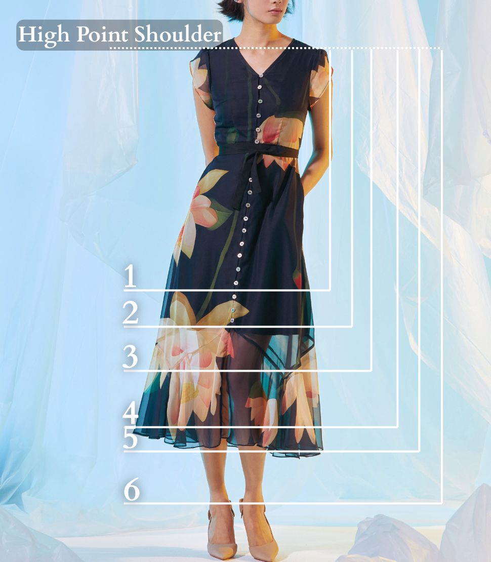 Finding the perfect dress length is all about knowing where it falls on your frame. Our dress lengths are categorized based on high point of shoulder to hem measurements with a slight variance of ±2cm to account for design and fabric differences: