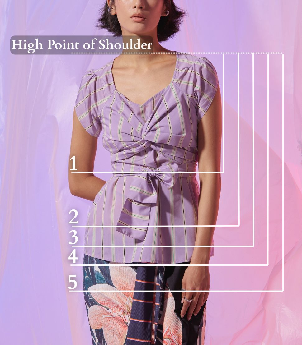 Finding the perfect top length is all about knowing where it falls on your frame. Our tops are categorized based on high point of shoulder to hem measurements with a slight variance of ±2cm to account for design and fabric differences: