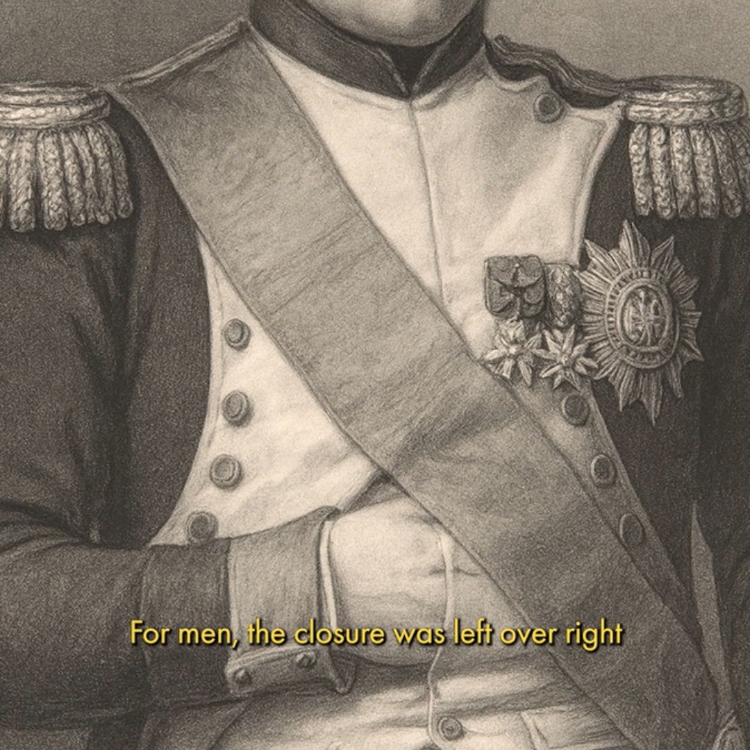 For men, the closure was left over right. It kept the right hand free to draw a weapon — quick, efficient, out of the way.