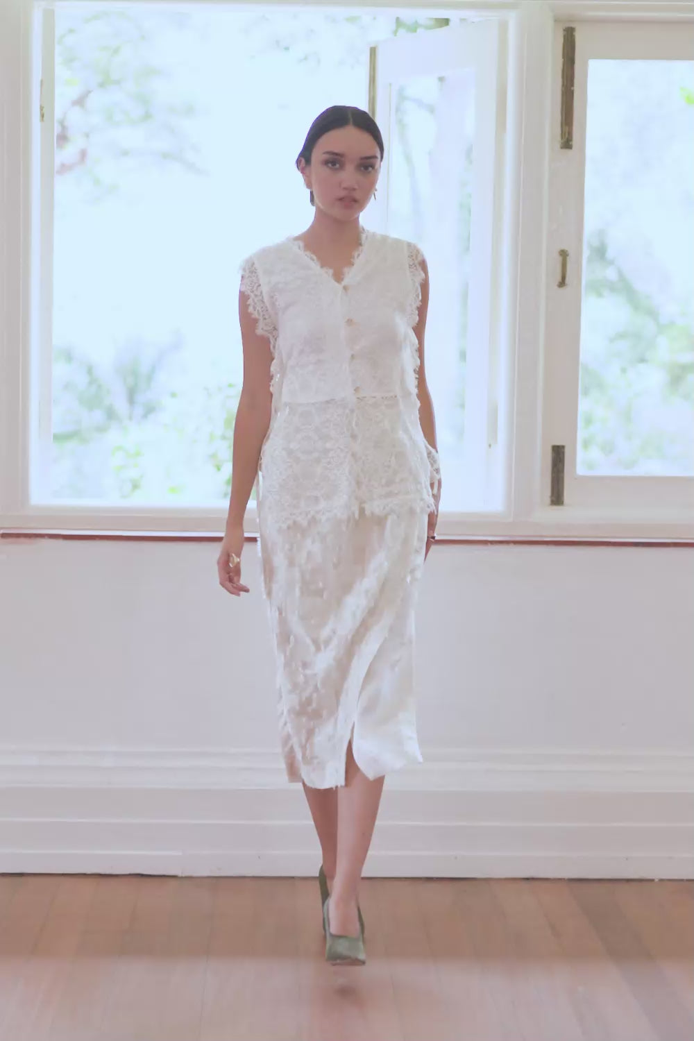 Faux Wrap Pencil Skirt (White) Sale price$259.00
